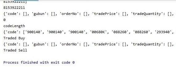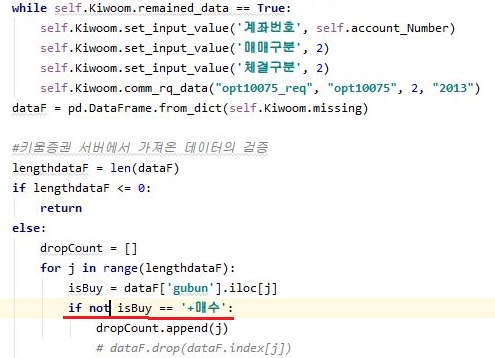 그리고 나서 다음으로 해야 할 일로는 위 스크린샷에서 볼 수 있는 것처럼, 일단 매수에서 나온 주문이 경우 혹 키움증권 서버에서 잘못 매도주문의 내용을 보내왔을 경우 일단 고치도록 만들어 보았습니다.