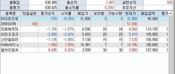 그리고 앞으로의 실험을 위해서, 일단 위 스크린샷에서 볼 수 있는 것처럼, 초기 자본금이 매도로 인해서 증가한 한 종목을 제외하고는 모두 원래대로 돌려 주도록 합니다.