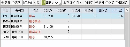 이날 거래가 전혀 없었느냐 하면 그건 아니고, 일단 거래가 일어나기는 일어났습니다. 다만 매도는 아직 할 때가 아니라서 이런 것인지 모르겠습니다만, 아직은 안 일어났습니다.
