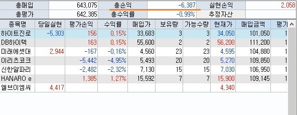 이번에는 제대로 이익이 나왔습니다. 이렇게 기세를 모아 가면서 일단 지켜보고 있는데, 정말 총 손익이라는 항목은 조회를 누를 때 마다 변해서, 이걸 인간이 지켜보는 것은 할짓이 아니라는 생각이 듭니다.