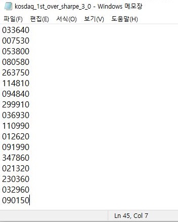 다만 이렇게 했어도, 여전히 남아 있는 종목의 갯수가 45개나 되는 상황을 볼 수 있습니다. 이걸 다 어떻게 할 수 있는 것이 아니기 때문에, 일단은 다음 스탭으로 역시나 다시 테스트에 들어가야 합니다.