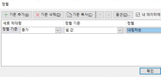 그리고 나서 다음으로 해야 할 일로는 위 스크린샷에서 볼 수 있는 것처럼, 일단은 내림차순으로 종가를 기준으로 정렬 해 보아야 합니다.