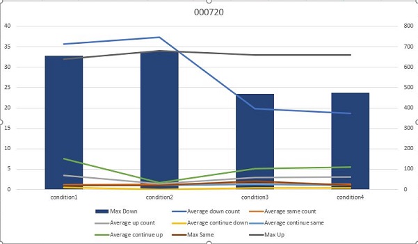 그 다음으로는 연속해서 올라가고, 내려간 횟수를 비교해 보았습니다만, 이것도 그렇게 똑 뿌러지게 무언가 좋은 결과를 보여주지는 못하고 있습니다. 이렇게 해서, 이 데이터를 두고서, 어떻게 활용해야 할지 모르는 와중에 상당히 애를 먹는 상황이 이어질 듯 합니다.