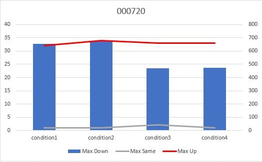 그리고 나서 최대로 나온 갯수를 한 종목에서 비교해 보았는데, 이렇게 조건별로 무언가 특별한 조건이 나오는 것 같지는 않아 보이는 상황입니다.