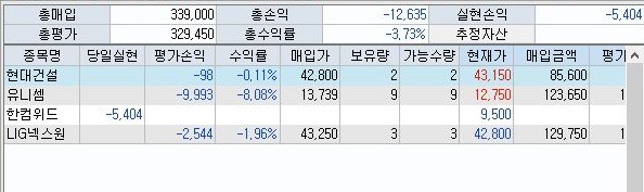 어떻게 한컴위드에서 손해를 보고도 어떻게 해서 다시금 매수가 일어나는 것을 볼 수 있었습니다. 이렇게 해서 어떻게 매수가 체결이 되었습니다.