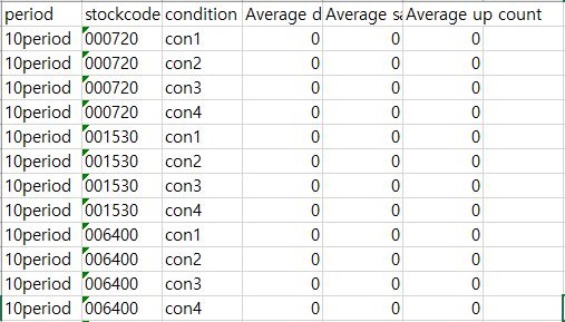 다 다음으로 더 빡빡한 조건에서 어떻게 변하는지에 대해서 한번 이야기를 해 보고자 했습니다만, 여기서도 알 수 있는 것으로는 역시나, 어느정도 period가 늘면서 없던 거래가 생기고, 부적절한 매수 이후 하락이 줄어드는 경향을 보이고 있기는 합니다.