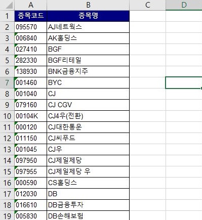 먼저 블랙 리스트라고 해서 일단 거래를 하면 안되는 사유가 가지가지로 한국거래소에 등록된 종목에 대한 정보를 먼저 가지고 오도록 합니다.