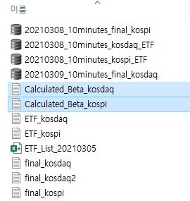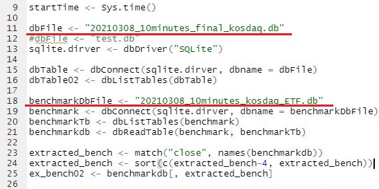 그리고 나서 이번엔느 위 스크린샷에서 볼 수 있는 것처럼, 코스닥의 경우를 계산해 보기 위해서, 일단은 기준점이 되는 데이터 베이스 파일과 종목이 있는 데이터 베이스 파일을 수정해 줍니다.