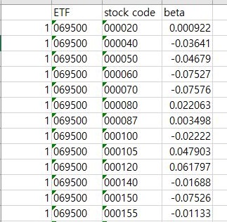 계속해서 같은 값이 여기서도 돌고 있는 것을 확인할 수 있었습니다. 이래서야 종목 선정을 하기 위한 베타값을 제대로 계산한 것이 맞는가 하면, 그건 아니기는 매우 아니기는 아니라고 할 수 있습니다. 아무튼 어디서 나온 에러인지 계속해서 찾아 봐야 합니다.