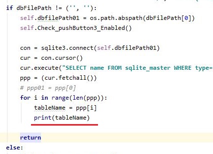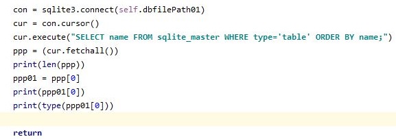 본격적으로 for loop안에서 데이터 베이스 파일에 지정된 테이블 이름을 가지고서 한번 가지고 올 수 있도록 코드를 짜 보도록 합니다.