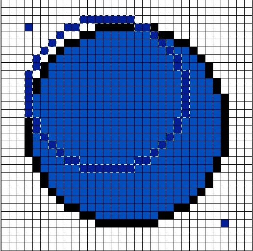 이렇게 해서 일단 구체 위에 희미하게 떠 있는 무언가가 나오는데, 이제 레이어를 circle로 바꾸고 나서, 거기다가 더 밝은 색으로 도트를 그려 보기는 봐야 합니다.