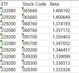 이렇게 해서 일단 베타값이 1.1이상만 추려서 185개란느 내용을 가지고 올 수 있었습니다. 다만 이게 너무 많은 것이 아닌가 하는 생각도 들었습니다.