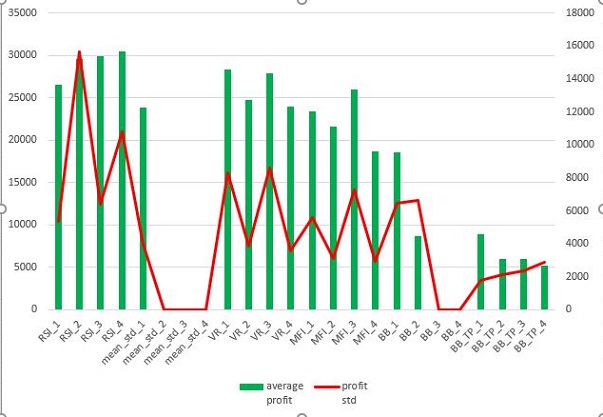 이렇게 해서 평균적인 수익과 표준편차를 비교해서 보니까, RSI의 경우에는 4번 보다는 3번의 경우가 더 편차가 적으면서 어떻게 더 나은 상황을 만들어 주는 것이 아닌가 합니다.