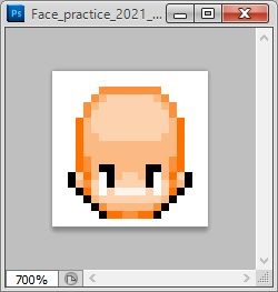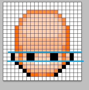 그리고 나서 눈썹과 눈매를 관장한다고 할 수 있는 1픽셀을 양쪽에 하나씩 검은색으로 찍어 주도록 합니다. 이렇게 해서 보니, 어느정도 무언가가 된 듯 합니다.