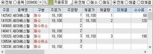다음으로 확인하고자 하는 것으로는 위 스크린샷에서 볼 수 있는 것처럼, 일단 손해를 본 거래가 있다는 것이 흠 정도가 아니라 상당히 큽니다. 이런 손해본 거래가 왜 있는지는 원이이 짐작이 가지만, 이걸 제거하기 위해서는......... 아마 20초 이후에 취소하지 말고 더 짧은 시간안에 매도가 체결되지 않으면 바로 취소해야 할 듯 합니다.