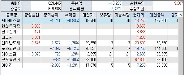 그리고 나서 위 스크린샷에서 확인해 본 손익계산에서 4월 5일 하루종일 9천원의 이이긍ㄹ 거두었습니다. 다만, 하이스틸을 거래하는 과정에서 상당한 손실을 입은 것은............ 두고두고 뼈아픕니다.