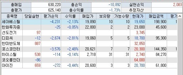 두번째 정산 - 2021년 4월 9일 금요일 모의투자 결과