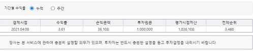 그리고 수수하게 어떻게 보면 천원대의 수익을 냈지만, 이게 중요한 것이 아니라 지금까지 얼마나 벌었으며, 얼마나 수익이 나왔는지에 대해서 한번 이야기를 해 보아야 할 시간이 되기는 되었습니다.