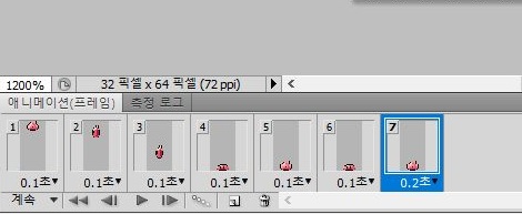 그렇게 해서 슬라임이 낙하는 애니메이션은 어떻게 만들어 내는데 성공했습니다. 이제 다음으로 해야 하는 것으로는 역시나 점프를 하는 애니메이션을 만들기 위해서, 이 낙하과정을 정 반대로 돌리는 프레임을 만들어 주어야 합니다.