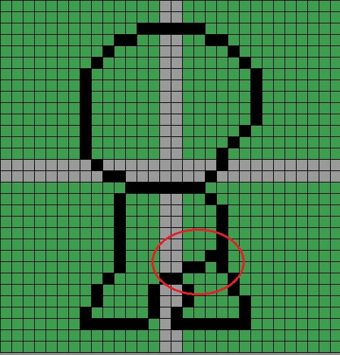 가장 먼저 해야 할 일은 먼저 머리를 1픽셀 아래로 내려 주도록 합니다. 왜 이렇게 하느냐 하면, 일단 다리가 늘어나지는 않으니, 골반부터 1픽셀 내려가게 됩니다. 그것을 반영해서 전체적인 키가 1픽셀 내려가는 것으로 표현해 주는 것 입니다.