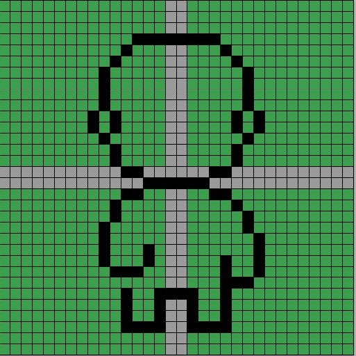 그래서 앞으로 향해 있는 왼쪽 다리를 1픽셀 더 크게 만들어 보았습니다. 이렇게 했더니 무언가가 더 커진 = 더 앞으로 온것 같은 느낌이 듭니다.