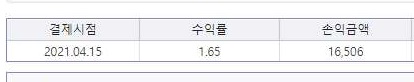 그래서 다음으로 알아보고자 하는 것은 이날 하루의 수익인데............ 정말 눈꼽만한 수익만 나오는 것을 확인할 수 있기는 있었습니다.