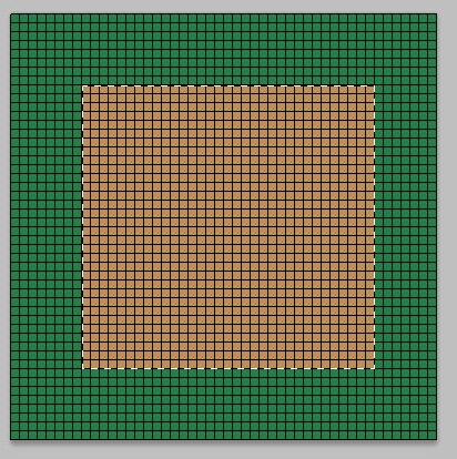 아무튼 이렇게 해서 일단 위 스크린샷처럼 맨땅이 되는 부분을 어떻게 만들어 내는데는 성공했습니다. 이제 어떻게 되느냐 하면, 모든 풀과 맨땅의 경계면이 직각으로 되는 것이 아니기는 합니다. 그래서 이런 부분을 타일로 만들어 주어야 하기는 합니다.