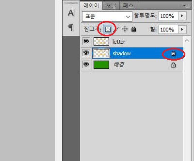 일단 작업을 상대적으로 쉽게 - 글자의 색상만 바꾸기 위해서, 일단은 위 스크린샷에서 먼저 투명 잠금을 하도록 합니다. 이렇게 하는 것으로 이제 다음으로 할 것은.........
