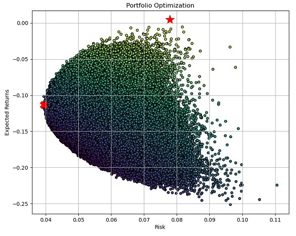 마지막으로는 선정된 각각의 조건 - total profit을 보거나 포트폴리오 가치를 보거나 해서 가장 상위에 있는 10종목을 가지고 효율적 투자선을 만들도록 합니다.