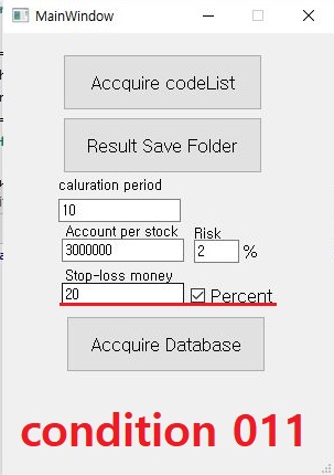 그래서 한번 11번 조건을 만들어 보아서, 이번에는 좀 더 넉넉한 손절매 %인 20%로 올려 주도록 했습니다. 이렇게 하는 것으로 이제 작업이 될 것이라고 생각을 했습니다.