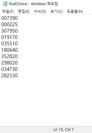 이제 다른 프로그램인 Stock Screener를 작동시켜서, 효율적 투자선을 구축하면서 제외시켜야 하는 종목이 나오는지 아닌지 알아보면.........