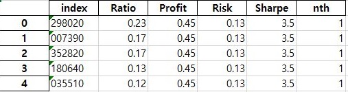 일단 구축한 결과 제대로 효율적 투자선이 나오는 것을 확인할 수 있기는 있었습니다. 이제 다음으로 가서, 가장 샤프지수가 큰 - 위험대비 수익이 큰 조건을 알아보러 갑니다.