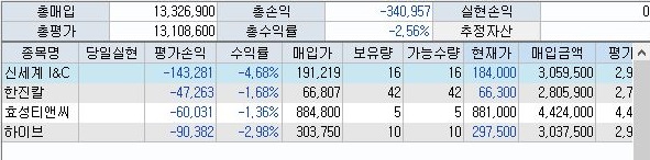 결국 보유한 주식의 가치하락으로 인해서 더 많은 손실이 나오기는 했습니다만, 이게 단순한 가치 하락인지, 아니면 차후에 오를 것을 노리고 있는지는 잘 모릅니다.