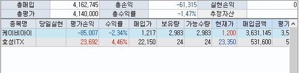 그리고 나서 계좌를 보니, 아주 소소하게 손해를 기록하고 있는 것을 확인할 수 있기는 있었습니다. 이런 상황이라면 이게 마지막날 정산을 할 때 어떻게 될지 잘 모르겠습니다.