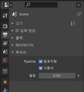 다음으로는 후처리 항목을 프린터 아이콘을 눌러서 불러와 보는데, 여기서는 떨림 항목을 0으로 만든 것 외에는 특별한 조작을 하나도 해 주지 않았습니다.