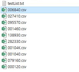우선 어떻게 해결을 해서 코드 리스트가 txt파일로 있으면 연습으로 10개의 종목을 연속으로 가지고 오는데는 성공적으로 작업을 했습니다.