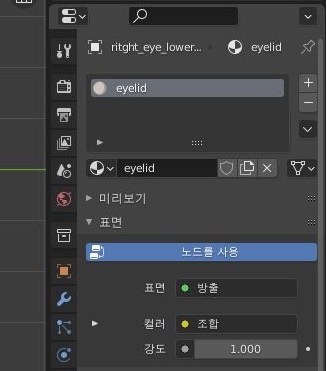 그리고 당연하다면 당연하게 material을 지정해 주도록 해야 하는데, 일단 해야 하는 것으로는 역시나 아랫꺼풀과 윗 꺼풀 모두 지정을 해 주어야 한다는 것 입니다.