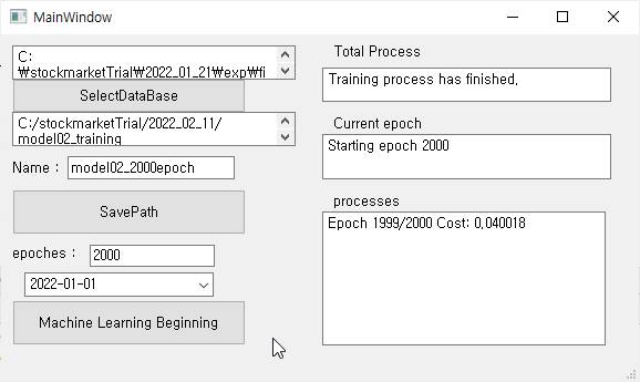첫 시작은 가볍다고 해야 할지 일단 2000에포크의 기계학습에 들어가 보도록 합니다. 그리고 나서 학습이 완료가 되도록 기다려 봅니다.