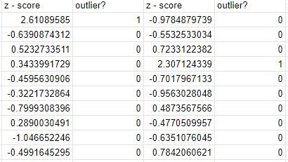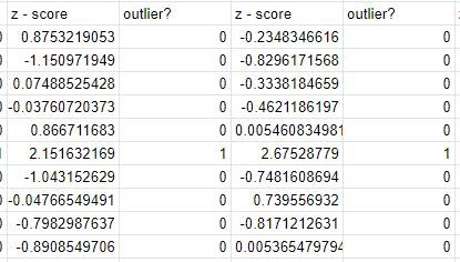 이렇게 해서 여기서도 Z-score의 값이 절대값으로 2 이상이 나오게 되면, 이상치로 규정을 하였더니, 역시나 이상치가 나오기는 나왔습니다.