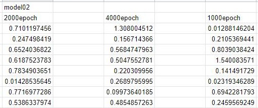 여기서 정말 흥미로운 결과는 바로 여기서 나왔습니다. 일단 기존에는 model01에서 2000에포크가 가장 나은 결과였지만, 이상치를 제거한 상황에서는 위 스크린샷에서 볼 수 있는 것처럼 어떻게 model03에서 6000에포크 기계학습을 한 결과가 가장 우수한 것으로 나왔습니다.