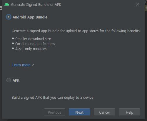 그래서 일단 aab 파일로 빌드해 보기 위해서 한번 준비를 시작했습니다. 그런데 이게 아무런 반응도 없고 아무런 것도 시작도 하지 않는 것 입니다.