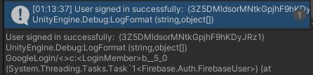 그런데 이번에는 유니티를 플레이 모드로 실행을 시키니, 어째서 인지 프리징이 되는 현상이 보고가 되었습니다. 이게 원인이 어디인가 했더니, 위 스크린샷에서 볼 수 있는 것처럼, 일단 auth를 초기화 시키는 과정에서 오류가 나왔던 것 입니다. 그래서 start에서 초기화 시키지 않고, 일일히 함수가 호출되는 메서드에서 초반에 초기화 시켰습니다.