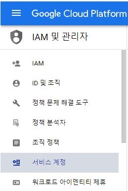일단 어디가 문제인가 싶어서 구글 클라우드 플랫폼으로 가서, 서비스 계정이라는 항목에 먼저 들어가 보도록 했습니다. 이렇게 해서 다음은.......