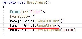 우선 첫번재로 어디서 에러가 나왔는가 하니, 모든 게임의 진행을 총괄하는 프로그렘에서 위 스크린샷에서 볼 수 있는 것처럼 Pause상태로 들어가라는 명령이 없어서 생긴 오류 였습니다.
