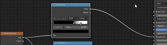 먼저 위 스크린샷에서 볼 수 있는 것처럼, 일단 노이즈 텍스쳐에서 무언가를 더 추가해서 이걸 Roughness와 연결을 시켜 주도록 합니다.