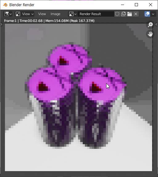 그리고 이전 렌더링이 너무 사실적으로 나온 것 같다는 생각이 들어서 해상도를 조금 떨어트려서 더 픽셀아트처럼 보이도록 조작을 했습니다.