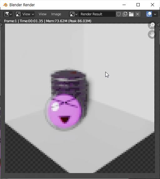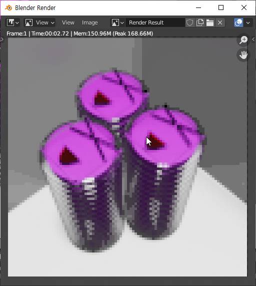 그래서 좀 더 근접해서 촬영을 - 렌더링을 F12키를 눌러서 했습니다. 이렇게 해서 나온 결과물은 조금은 상황이 더 나아지기는 했습니다.