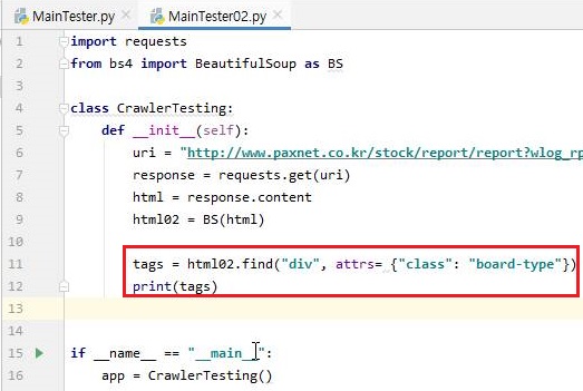 먼저 필요한 부분의 태그만 가지고 올 수 있도록 일단 위 스크린샷에서 보이는 부분을 가지고 오도록 합니다. 이렇게해서 보드 타입만 가지고 오면.........