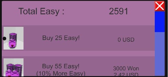 그리고 나서 한글로 했을 경우에는 위 스크린샷에서 볼 수 있는 것처럼 일단 인앱 재화에 대해서 한번 만들어 놓기는 놓았습니다. 이제 어느정도 한글로 통일될 경우에는 통일을 할 수 있는 곳은 제대로 했으니, 다음으로 난이도에 대해서 다루는 단계가 이제 남아 있습니다.