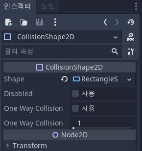 그리고 나서 다음으로는 Collisioin Shape 2D를 사용하기 위해서 일단 Shape항목을 지정해야 하는데, 일단 하나 만들어 주기는 주었습니다.
